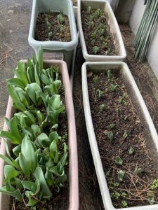 まだまだ寒い日がありますが、庭の花たちは芽が出てきたり、蕾が膨らんできました。